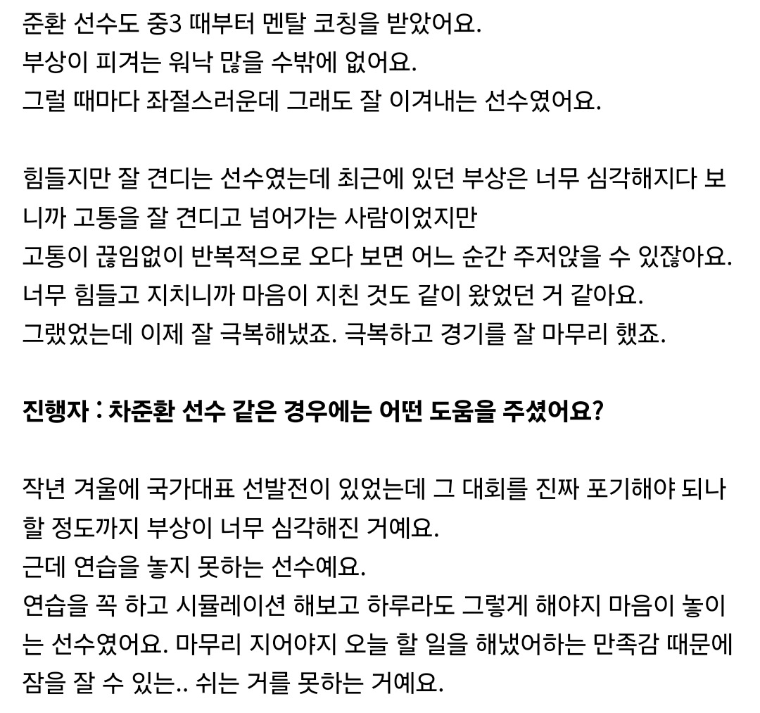 같이 훈련 받았던 동료선수가 말하는 차준환
