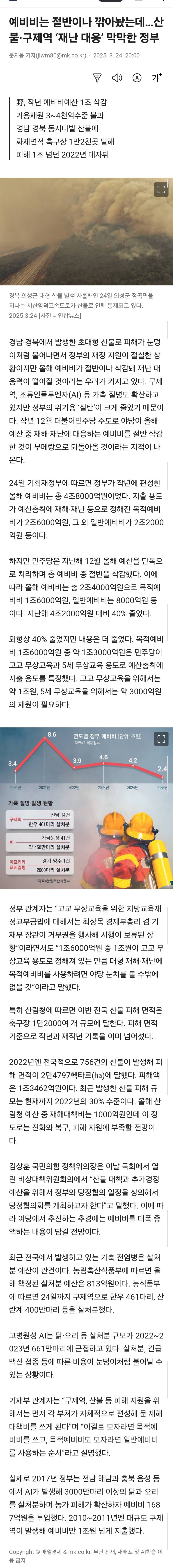 재난 재해용 목적예비비는 꼴랑 3천억원이구랴...