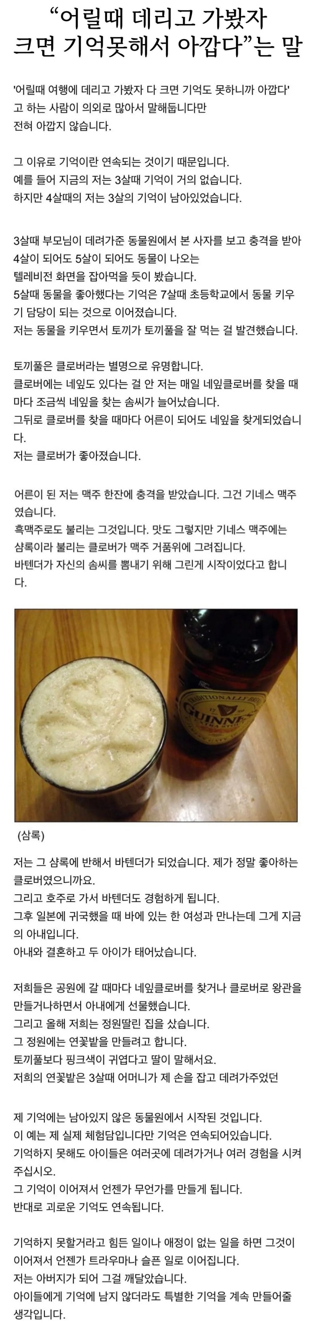 [기타]"어릴때 데리고 가봤자 크면 기억못해서 아깝다”는 말 작성자JB|작성시간25.07.03|조회수546 목록 댓글 0 글자크기 작게가 글자크기 크게가 다음검색 현재 게시글 추가 기능 열기 북마크 공유하기 신고 센터로 신고 댓글 댓글 0 댓글쓰기 답글쓰기 댓글 리스트