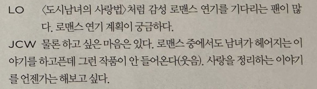 참고로 로맨스 대본 안들어온다는 얘기는 아님