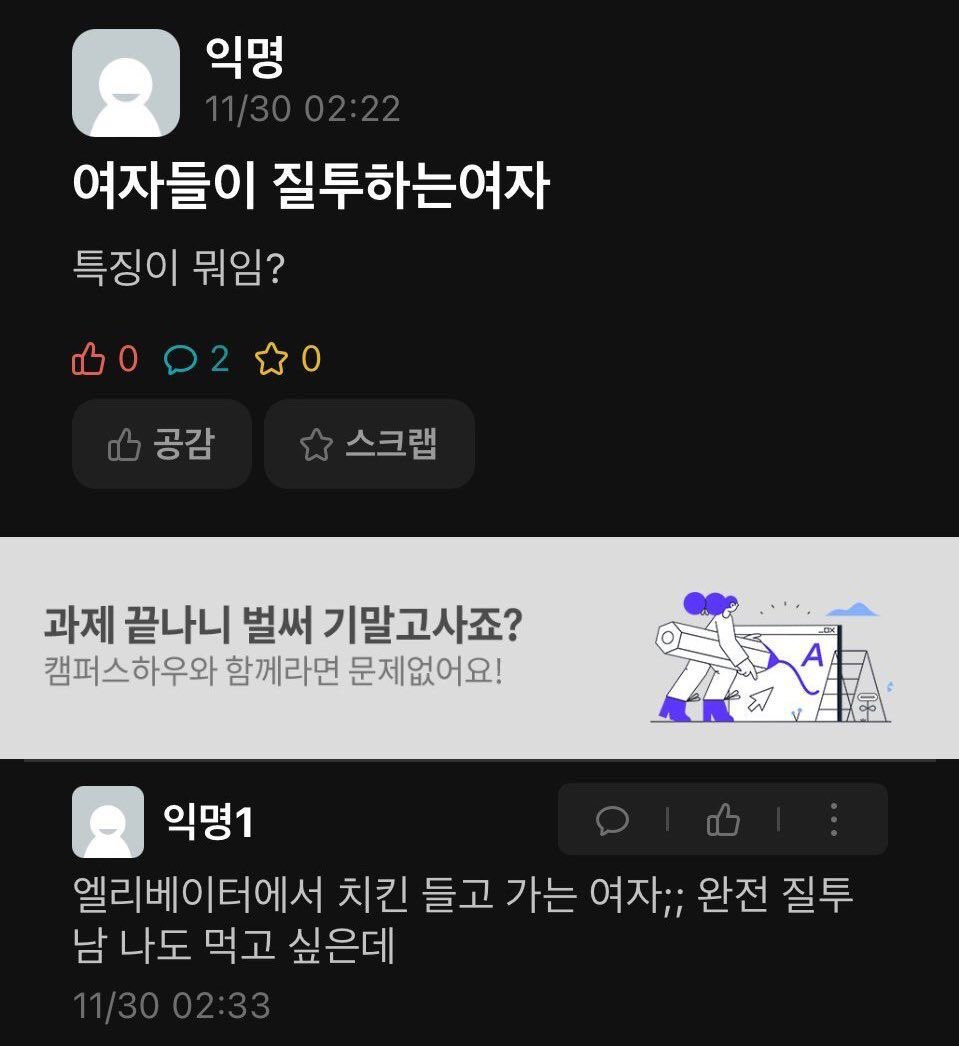 [기타]여자들이 질투하는 여자 작성자JB|작성시간25.12.16|조회수8,204 목록 댓글 2 글자크기 작게가 글자크기 크게가 다음검색 현재 게시글 추가 기능 열기 북마크 공유하기 신고 센터로 신고 댓글 댓글 2 댓글쓰기 답글쓰기 댓글 리스트 작성자JB | 작성시간 25.12.16 ㄹㅇ 작성자JB | 작성시간 25.12.16 ㄹㅇ 아니면 두쫀쿠 들고 가는 여자 댓글 전체보기