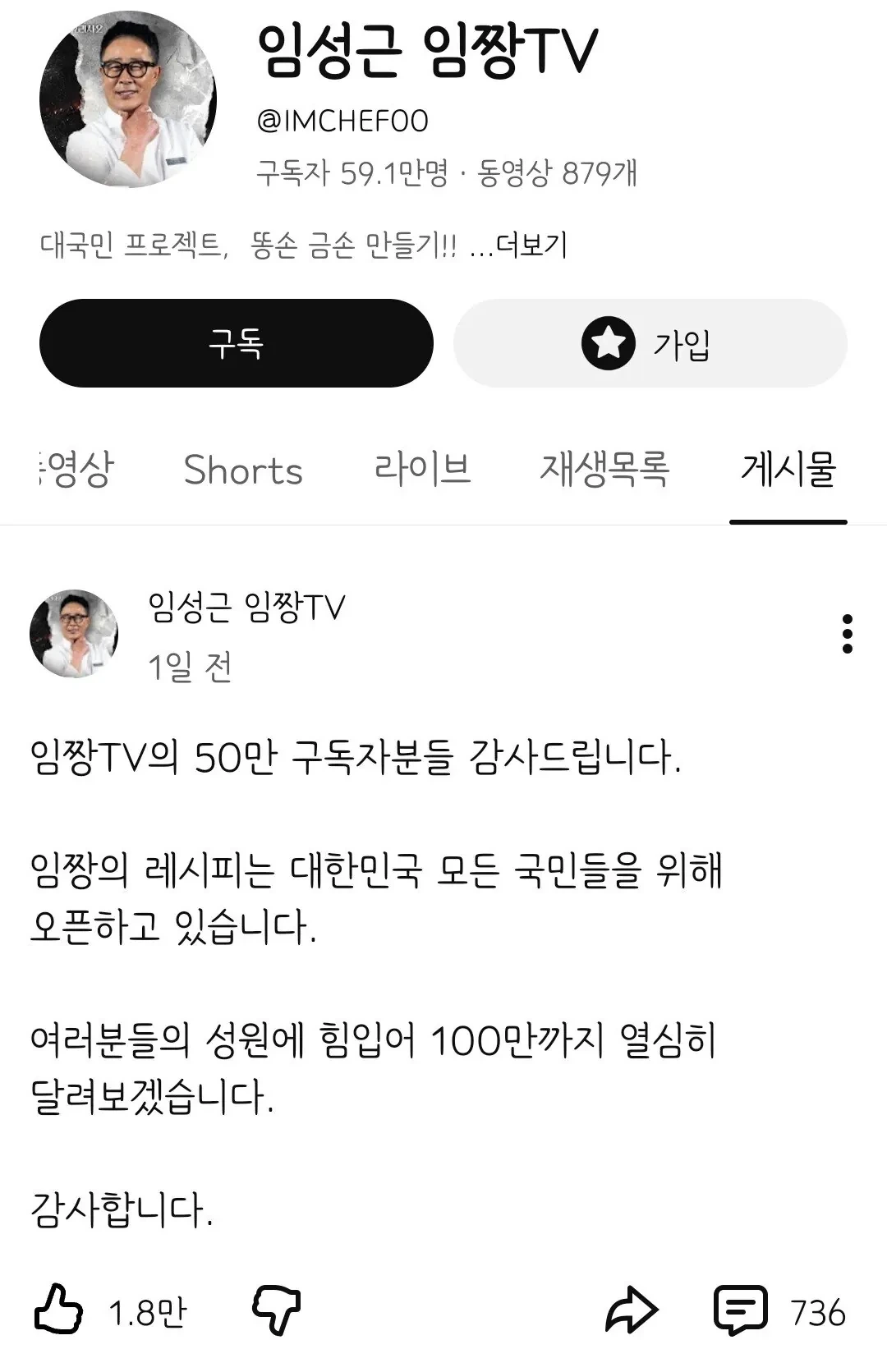 [기타]흑백 임성근 유튜브 구독자 증가 속도 작성자JB|작성시간26.01.02|조회수1,333 목록 댓글 1 글자크기 작게가 글자크기 크게가 다음검색 현재 게시글 추가 기능 열기 북마크 공유하기 신고 센터로 신고 댓글 댓글 1 댓글쓰기 답글쓰기 댓글 리스트 작성자JB | 작성시간 26.01.02 오 댓글 전체보기