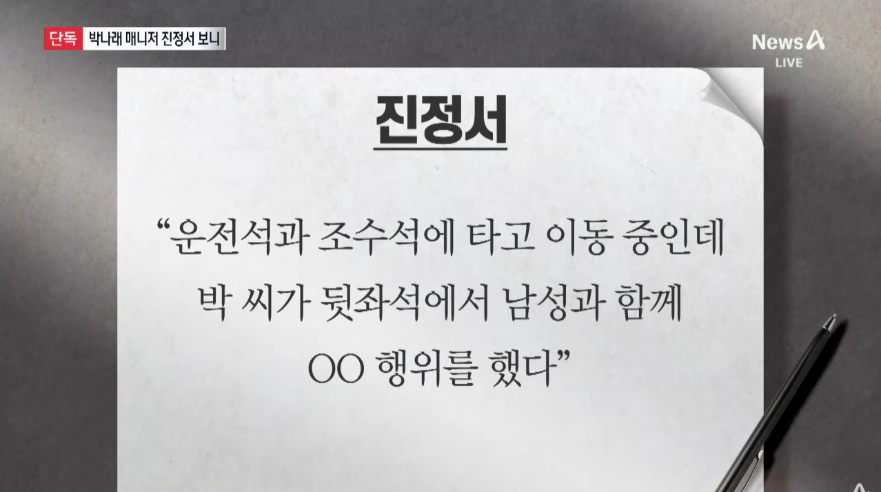 [기타][단독] 박나래 전 매니저들의 진성서 내용 "차량 뒷자석 윈치 않는 상황, 강제 인지하게끔 해" 작성자JB|작성시간26.01.02|조회수14,529 목록 댓글 8 글자크기 작게가 글자크기 크게가 다음검색 현재 게시글 추가 기능 열기 북마크 공유하기 신고 센터로 신고 댓글 댓글 8 댓글쓰기 답글쓰기 댓글 리스트 작성자JB | 작성시간 26.01.02 원래 이런사람이었나.. 작성자JB | 작성시간 26.01.02 아니이게말이되나 ㅁㅊ내가썩은건가 작성자JB | 작성시간 26.01.02 헐 작성자JB | 작성시간 26.01.02 진짜? 작성자JB | 작성시간 26.01.03 와.. 댓글 전체보기