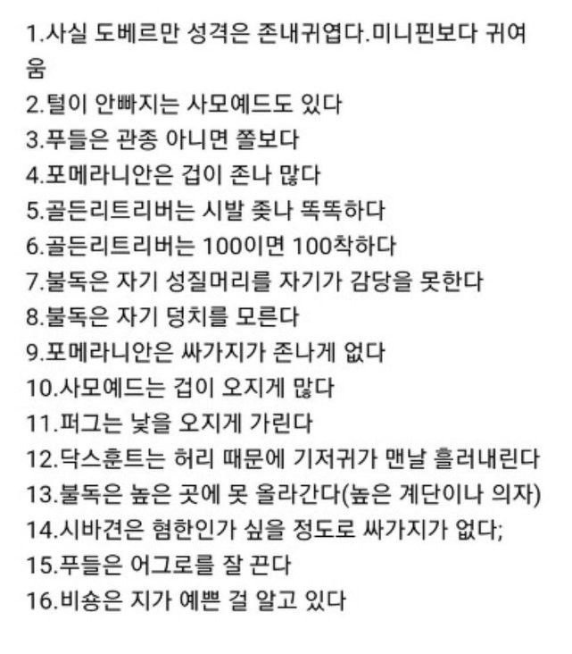 [기타]애견카페 알바가 쓴 강아지들 성격 작성자JB|작성시간26.01.05|조회수519 목록 댓글 1 글자크기 작게가 글자크기 크게가 다음검색 현재 게시글 추가 기능 열기 북마크 공유하기 신고 센터로 신고 댓글 댓글 1 댓글쓰기 답글쓰기 댓글 리스트 작성자JB | 작성시간 26.01.05 ㅋㅋㅋ 댓글 전체보기