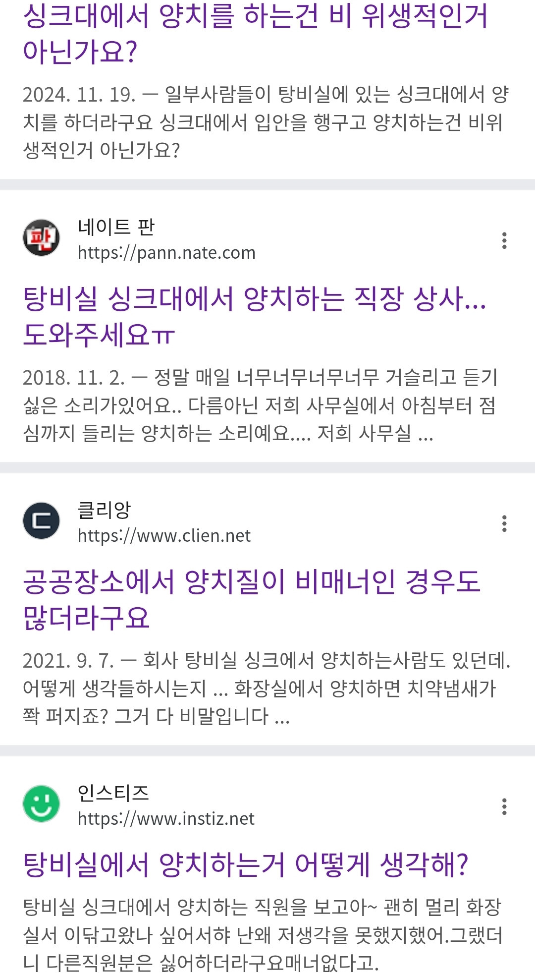 [기타]회사 탕비실에서 양치하는 사람들 싫다 작성자JB|작성시간26.01.05|조회수539 목록 댓글 1 글자크기 작게가 글자크기 크게가 다음검색 현재 게시글 추가 기능 열기 북마크 공유하기 신고 센터로 신고 댓글 댓글 1 댓글쓰기 답글쓰기 댓글 리스트 작성자JB | 작성시간 26.01.05 화장실가 댓글 전체보기