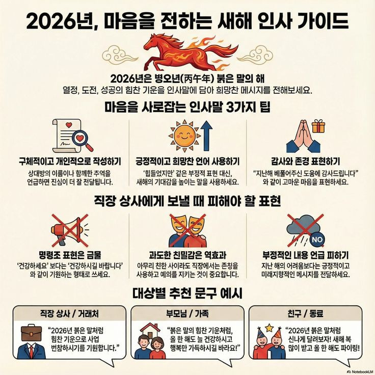 [기타]은근 까다로운 신년/명절 인사법 작성자JB|작성시간26.01.06|조회수323 목록 댓글 1 글자크기 작게가 글자크기 크게가 다음검색 현재 게시글 추가 기능 열기 북마크 공유하기 신고 센터로 신고 댓글 댓글 1 댓글쓰기 답글쓰기 댓글 리스트 작성자JB | 작성시간 26.01.06 ㄱㅅ 댓글 전체보기
