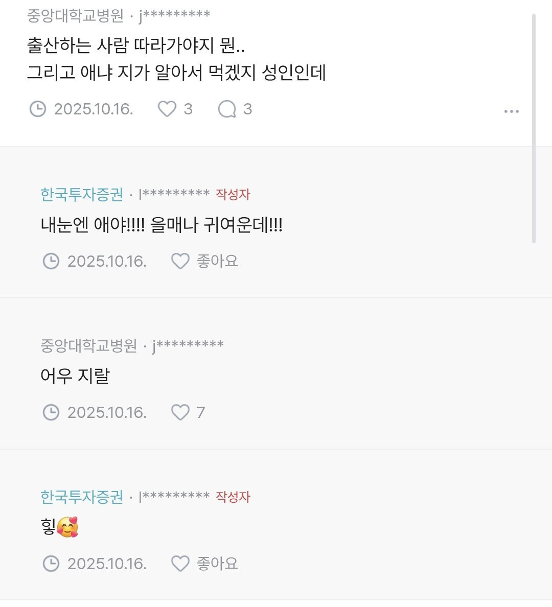 [기타]출산하러 갈때 남편 밥 어떻게 해? 작성자JB|작성시간26.01.07|조회수4,010 목록 댓글 3 글자크기 작게가 글자크기 크게가 다음검색 현재 게시글 추가 기능 열기 북마크 공유하기 신고 센터로 신고 댓글 댓글 3 댓글쓰기 답글쓰기 댓글 리스트 작성자JB | 작성시간 26.01.07 ㅈㄹ 작성자JB | 작성시간 26.01.07 으 작성자JB | 작성시간 26.01.07 으 댓글 전체보기