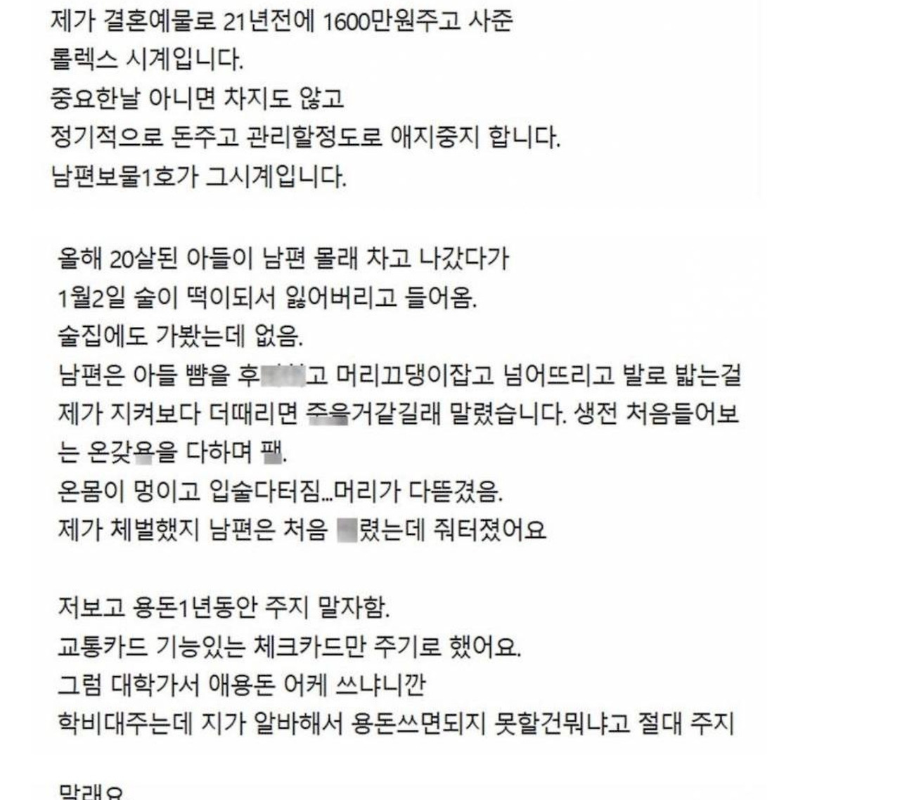 [기타]남편시계를 훔쳐들고 나가서 잃어버린 아들 작성자JB|작성시간26.01.07|조회수818 목록 댓글 7 글자크기 작게가 글자크기 크게가 다음검색 현재 게시글 추가 기능 열기 북마크 공유하기 신고 센터로 신고 댓글 댓글 7 댓글쓰기 답글쓰기 댓글 리스트 작성자JB | 작성시간 26.01.07 당연히 저래야지 용돈도 많이줬구만 작성자JB | 작성시간 26.01.07 아버지가 아끼는걸 알면서도.. 몰래 가져가서 잃어버리기까지 했네 작성자JB | 작성시간 26.01.07 ㅈㄴ오냐오냐 자랐네 작성자JB | 작성시간 26.01.07 아들은 저래야함.. 답댓글 작성자JB | 작성시간 26.01.07 22 지금 글만봐도 정신못차린게보임 댓글 전체보기