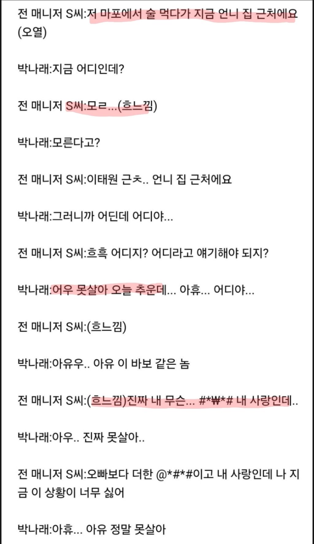 ✔️ 매니저가 술에 취한상태로 내 사랑이라고 이 상황이 싫다고 엉엉울고 만나서도 만나자마자 서로 엉엉 울면서 대화
