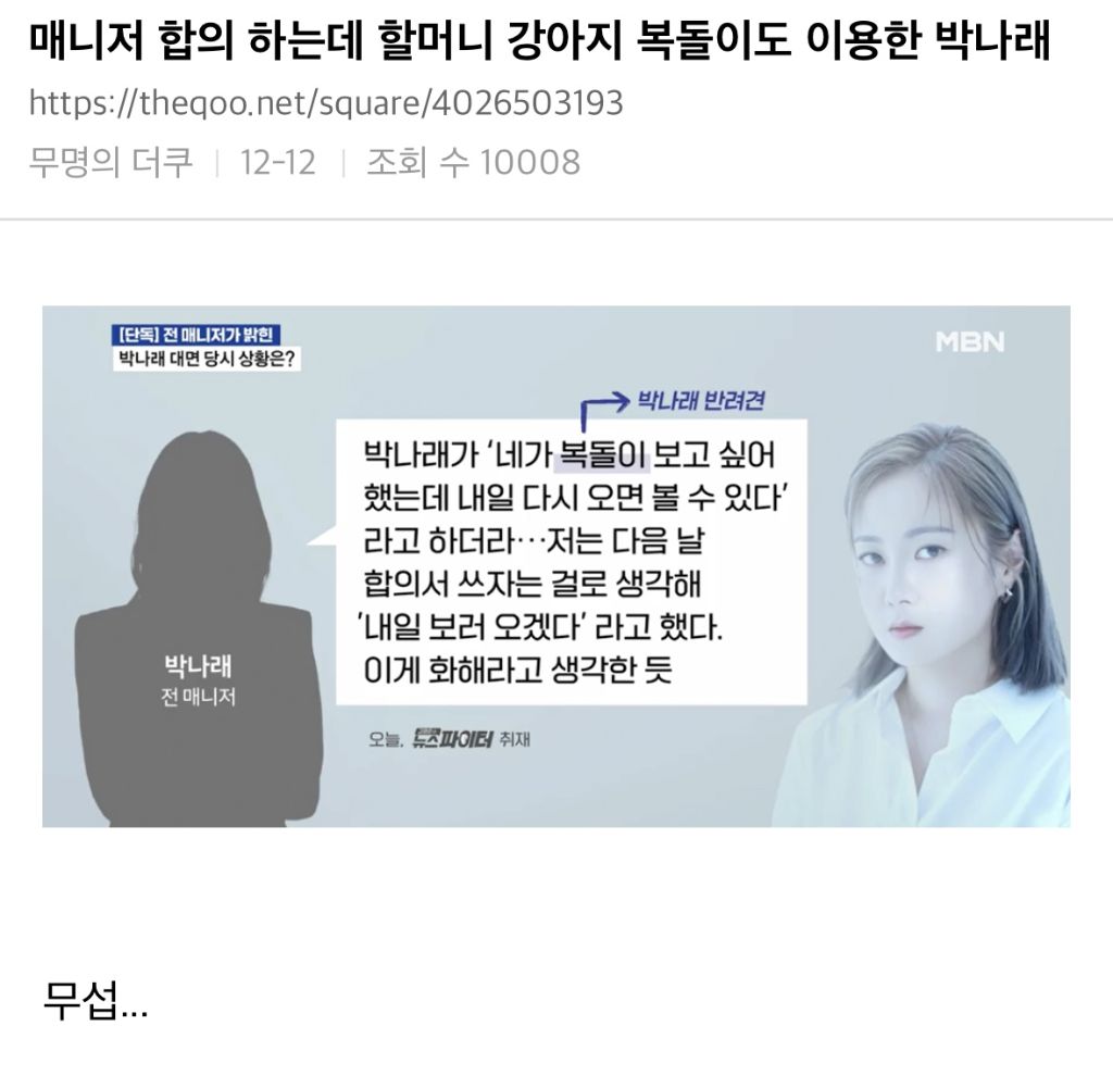 👉 박나래가 합의 위해서 복돌이 이용했다고 욕 뒤지게 먹음