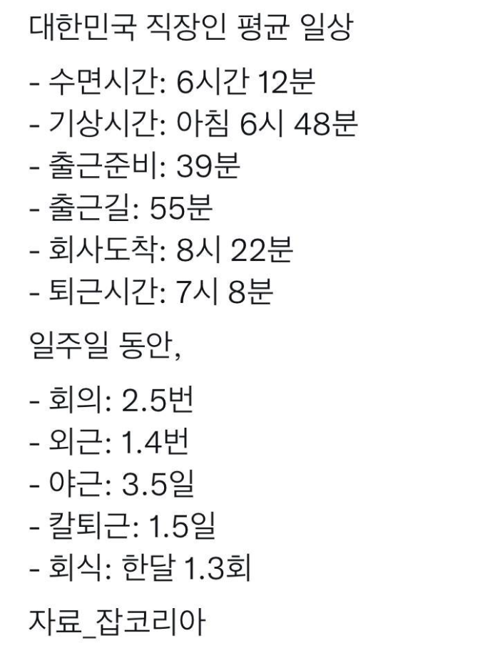 [기타]대한민국 직장인 평균 일상 작성자JB|작성시간26.02.13|조회수14,768 목록 댓글 3 글자크기 작게가 글자크기 크게가 다음검색 현재 게시글 추가 기능 열기 북마크 공유하기 신고 센터로 신고 댓글 댓글 3 댓글쓰기 답글쓰기 댓글 리스트 작성자JB | 작성시간 26.02.13 ㅠ와 작성자JB | 작성시간 26.02.13 야근 ㅠ 작성자JB | 작성시간 26.02.13 ㅅㅂ 댓글 전체보기