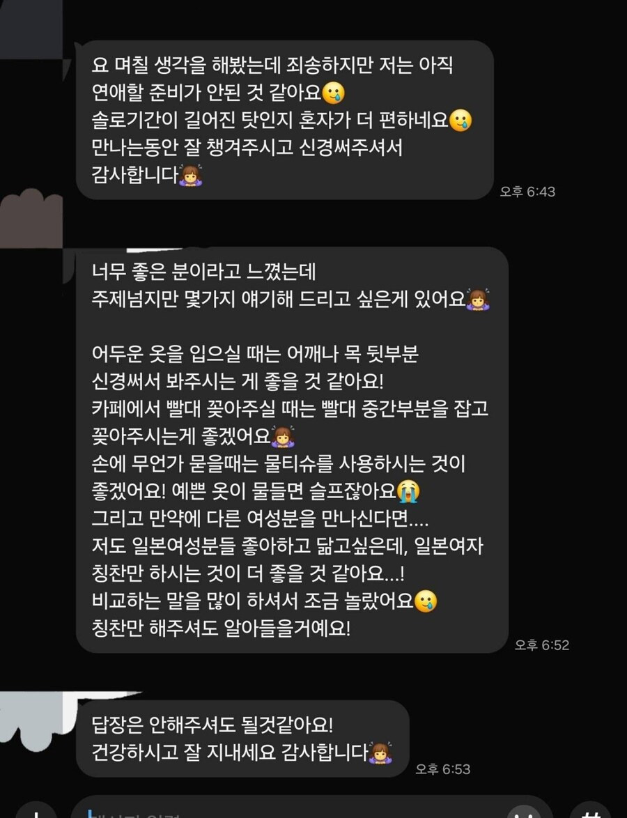[기타]소개 다시는 안 받음 ㅇㅇ 작성자JB|작성시간26.03.20|조회수743 목록 댓글 3 글자크기 작게가 글자크기 크게가 다음검색 현재 게시글 추가 기능 열기 북마크 공유하기 신고 센터로 신고 댓글 댓글 3 댓글쓰기 답글쓰기 댓글 리스트 작성자JB | 작성시간 26.03.20 진짜 착하다 작성자JB | 작성시간 26.03.20 개착하다 진짜.. 작성자JB | 작성시간 26.03.20 ㅅㅂ손가락에 처묻은거 옷에 쓱싹 했나보네 댓글 전체보기