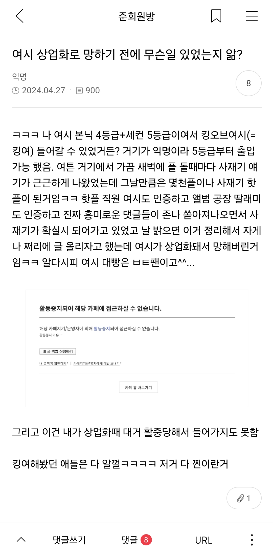 [스크랩] [기타]여시 상업화로 망하기전에 무슨일 있었는지 앎?