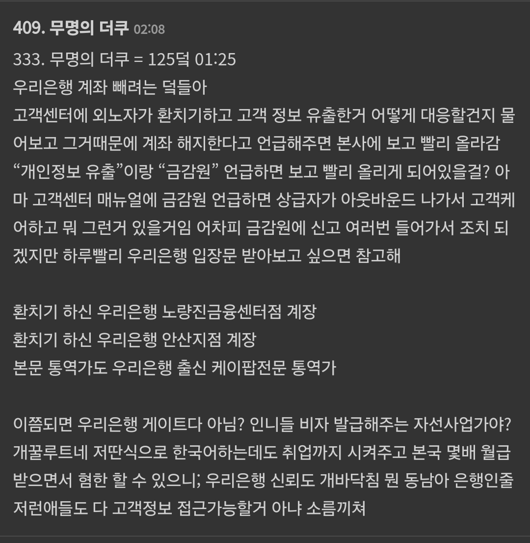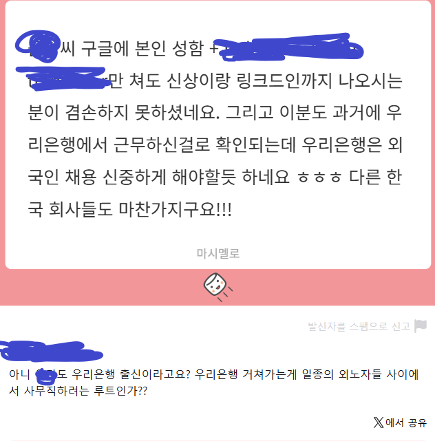 한국 혐오 발언한 한국거주 인도네시아인들 중 임팩트가 컸던 사람들은 하나 둘 우리은행 출신인게 밝혀지는 중