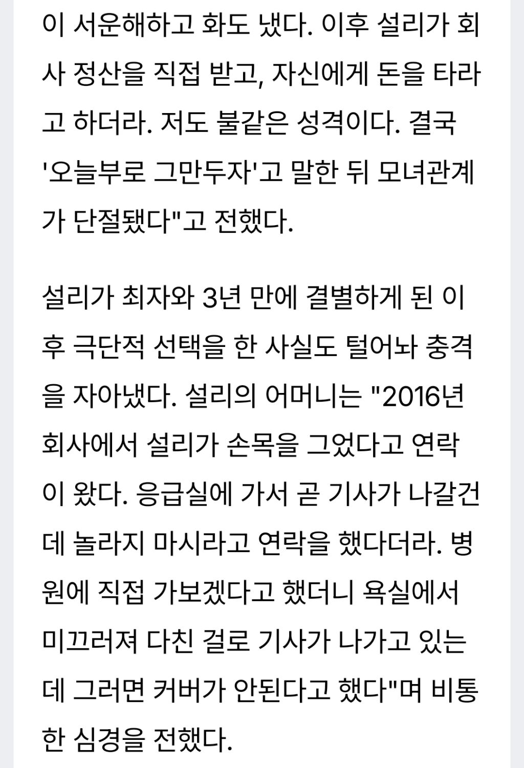 이후 설리 어머니 인터뷰