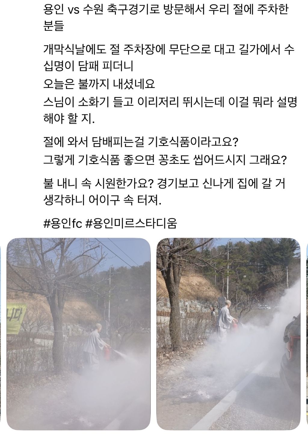 [기타]무단으로 주차, 흡연하다가 절에 불낸 축구팬들 작성자JB|작성시간26.03.29|조회수500 목록 댓글 2 글자크기 작게가 글자크기 크게가 다음검색 현재 게시글 추가 기능 열기 북마크 공유하기 신고 센터로 신고 댓글 댓글 2 댓글쓰기 답글쓰기 댓글 리스트 작성자JB | 작성시간 26.03.29 안봐도 남자다 작성자JB | 작성시간 26.03.29 ㅂㅅ들 댓글 전체보기