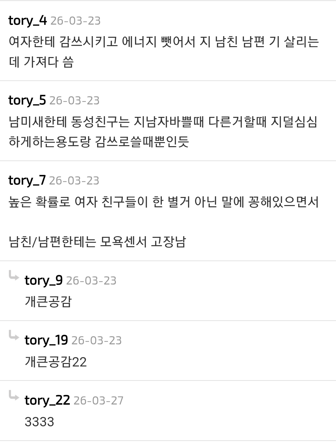 [기타]공감하는 사람들 많았던 남미새 특징.jpg 작성자JB|작성시간26.03.29|조회수488 목록 댓글 2 글자크기 작게가 글자크기 크게가 다음검색 현재 게시글 추가 기능 열기 북마크 공유하기 신고 센터로 신고 댓글 댓글 2 댓글쓰기 답글쓰기 댓글 리스트 작성자JB | 작성시간 26.03.30 ㅇㄱㄹㅇ 작성자JB | 작성시간 26.03.30 와 첫번째 댓글 공감 댓글 전체보기