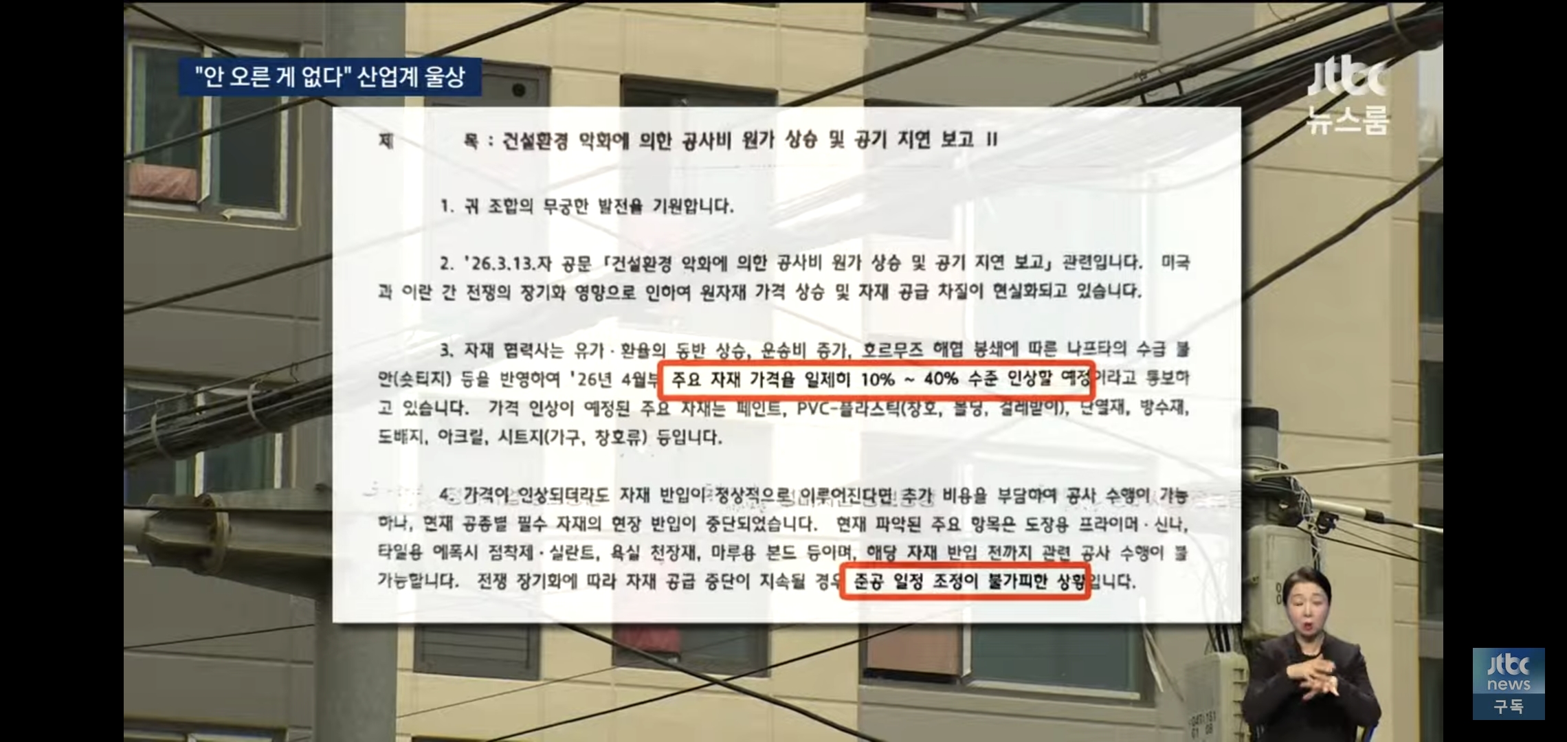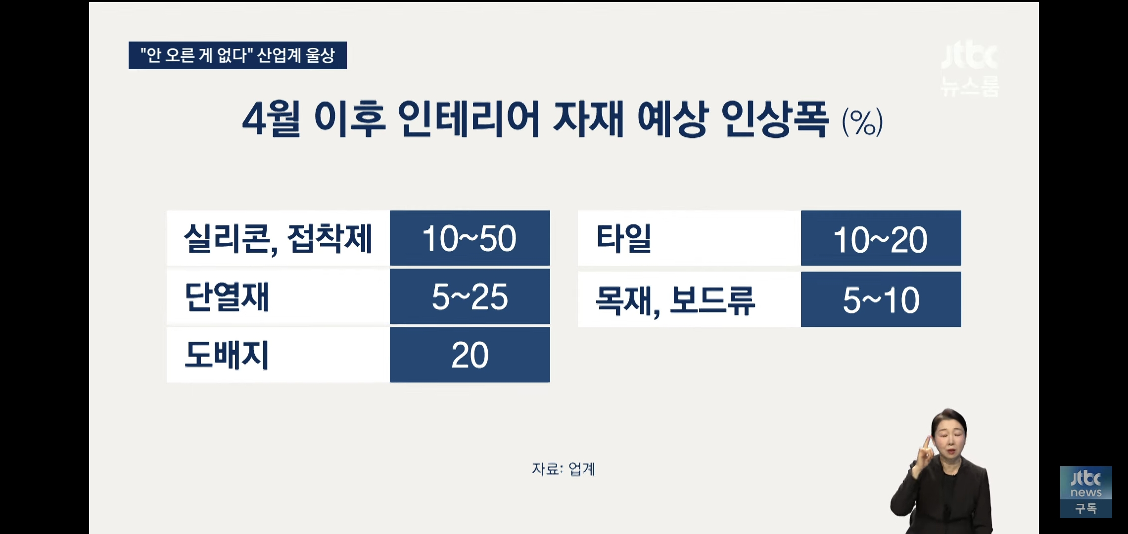 건설, 인테리어 자재 수급 안 돼서 비용 상승