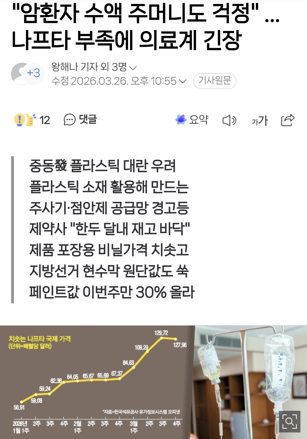 수액팩, 주사기 등 각종 비닐, 플라스틱 제품들 수급 어려워짐