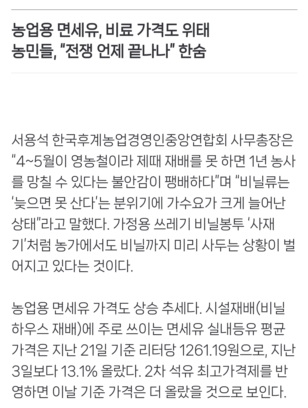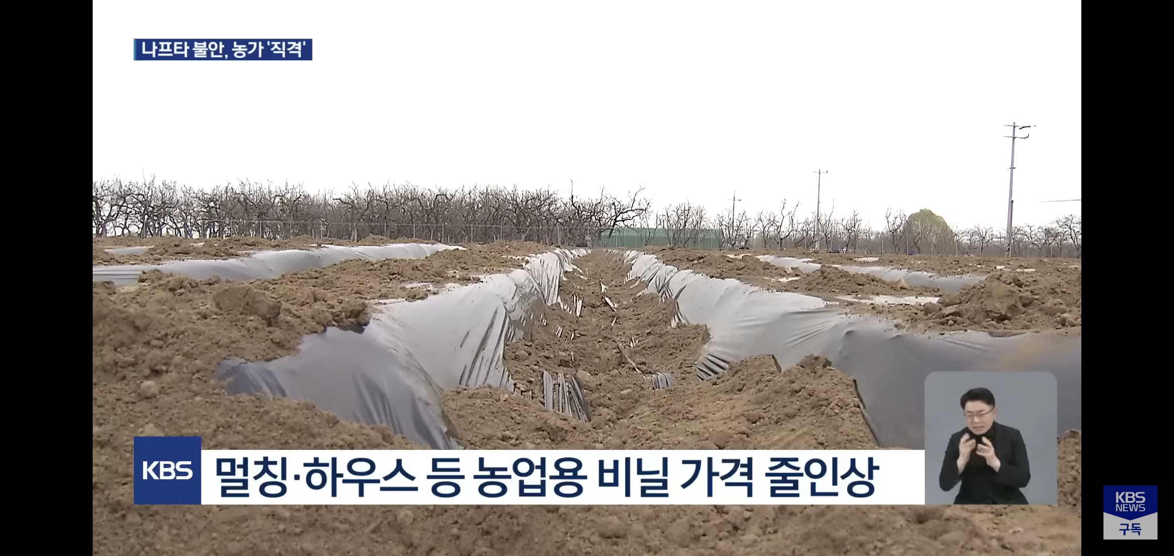 멀칭, 비닐하우스용 비닐 수급 어려움 (4월이 농사철 시작이라 지금 타이밍 놓치면 올해 수확철에 농산물 난리남..ㅜ)