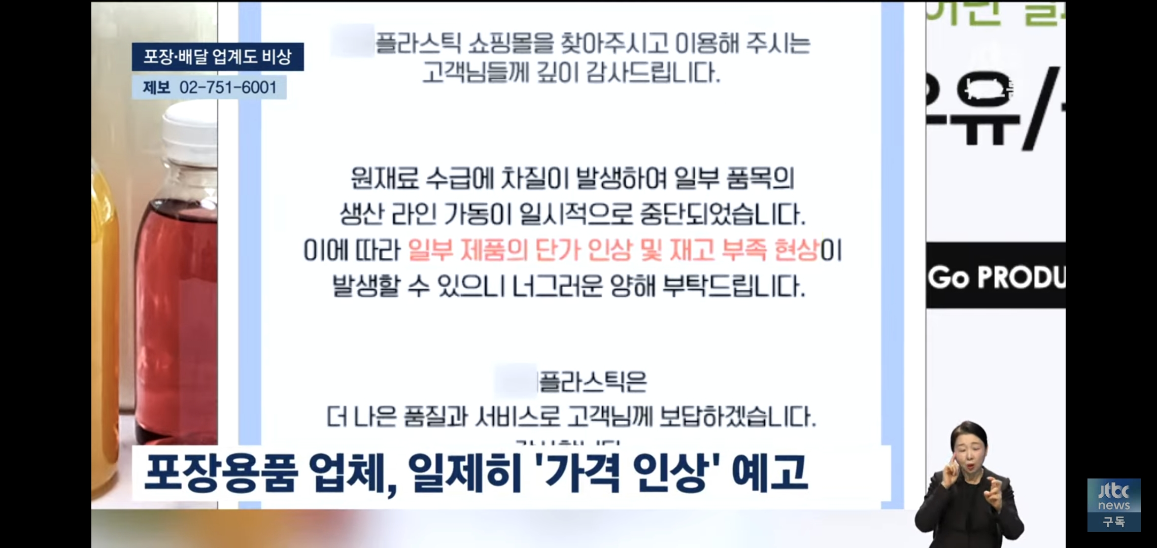 카페, 음식점 등 배달, 테이크아웃 어려워짐, 자재 비용 상승