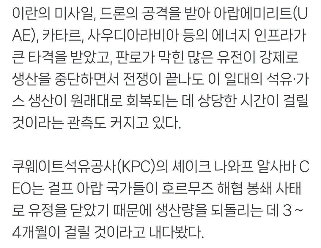 뉴스에서도 전쟁이 끝난다고 하더라도 끝난 시점부터 4~5개월은 지나야