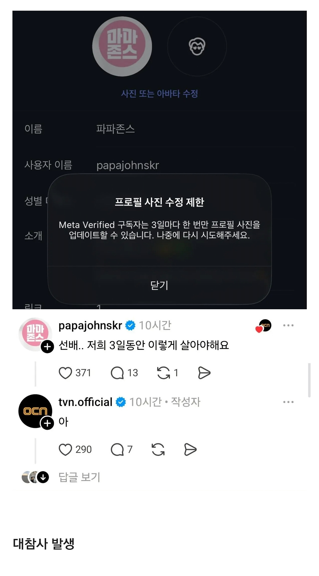 [기타]만우절 기념으로 스레드 프사 바꾼 기업계정 작성자JB|작성시간26.04.01|조회수368 목록 댓글 1 글자크기 작게가 글자크기 크게가 다음검색 현재 게시글 추가 기능 열기 북마크 공유하기 신고 센터로 신고 댓글 댓글 1 댓글쓰기 답글쓰기 댓글 리스트 작성자JB | 작성시간 26.04.01 ㅋㅋㅋㅋ 댓글 전체보기