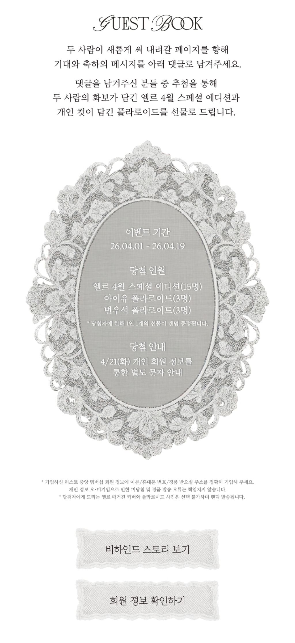 아이유 변우석 모바일 청첩장 작성자JB|작성시간26.04.01|조회수20,767 목록 댓글 2 글자크기 작게가 글자크기 크게가 다음검색 현재 게시글 추가 기능 열기 북마크 공유하기 신고 센터로 신고 댓글 댓글 2 댓글쓰기 답글쓰기 댓글 리스트 작성자JB | 작성시간 26.04.01 new 너무 잘어울려 작성자JB | 작성시간 26.04.01 new ㄱㅇㅇ 댓글 전체보기