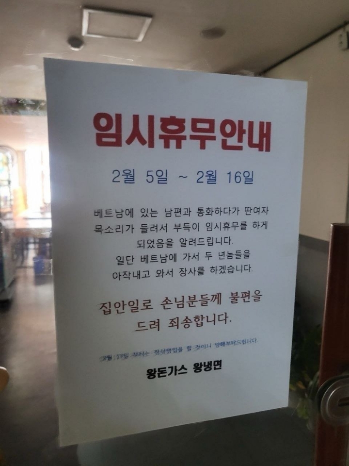 돈가스 식당의 임시 휴업 이유 작성자JB|작성시간26.04.02|조회수524 목록 댓글 2 글자크기 작게가 글자크기 크게가 다음검색 현재 게시글 추가 기능 열기 북마크 공유하기 신고 센터로 신고 댓글 댓글 2 댓글쓰기 답글쓰기 댓글 리스트 작성자JB | 작성시간 26.04.02 헐 작성자JB | 작성시간 26.04.02 한남이 쓴 문체같냐 댓글 전체보기