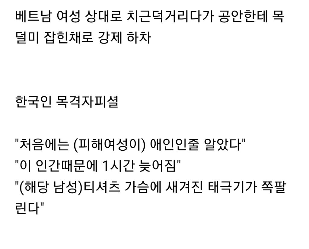 [스크랩] [혐오]베트남 비행기서 성추행 하다 걸린 한국인 작성자JB|작성시간26.04.03|조회수390 목록 댓글 1 글자크기 작게가 글자크기 크게가 작년 12월 사건 다음검색 스크랩 원문 : 이종격투기 현재 게시글 추가 기능 열기 북마크 공유하기 신고 센터로 신고 댓글 댓글 1 댓글쓰기 답글쓰기 댓글 리스트 작성자JB | 작성시간 26.04.03 그냥 거기서 사형시켜 댓글 전체보기
