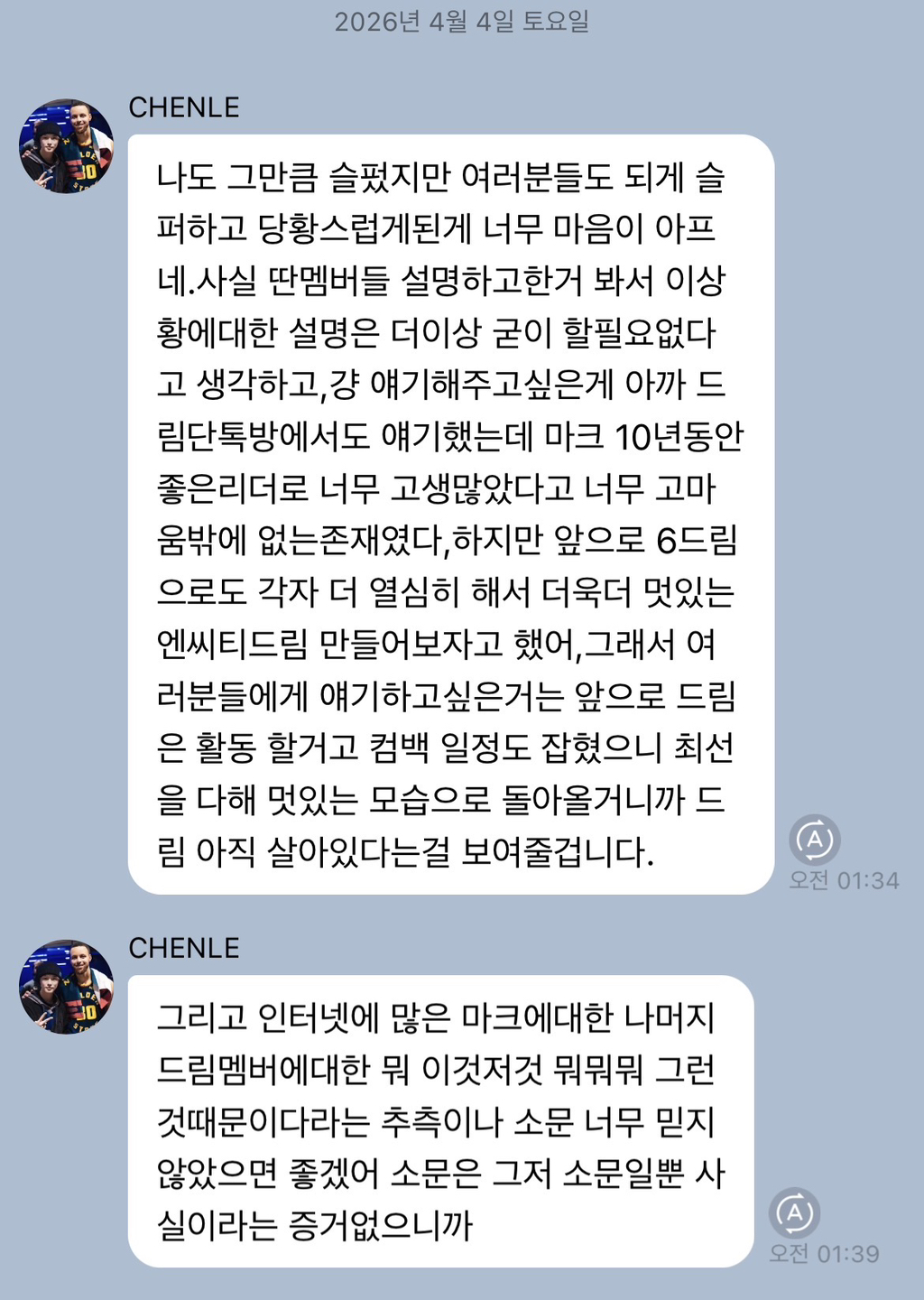 [스크랩] [기타]NCT 천러 버블 작성자JB|작성시간26.04.04|조회수1,876 목록 댓글 1 글자크기 작게가 글자크기 크게가 출처: https://theqoo.net/square/4150648093더쿠 - NCT 천러 버블여기를 눌러 링크를 확인하세요theqoo.net지성이랑 천러 버블 진정성 느껴져드림 파이팅 다음검색 스크랩 원문 : *여성시대* 차분한 20대들의 알흠다운 공간 현재 게시글 추가 기능 열기 북마크 공유하기 신고 센터로 신고 댓글 댓글 1 댓글쓰기 답글쓰기 댓글 리스트 작성자JB 작성자 본인 여부 작성자 | 작성시간 26.04.04 천러 중국인 멤버 이미지 확대 댓글 전체보기