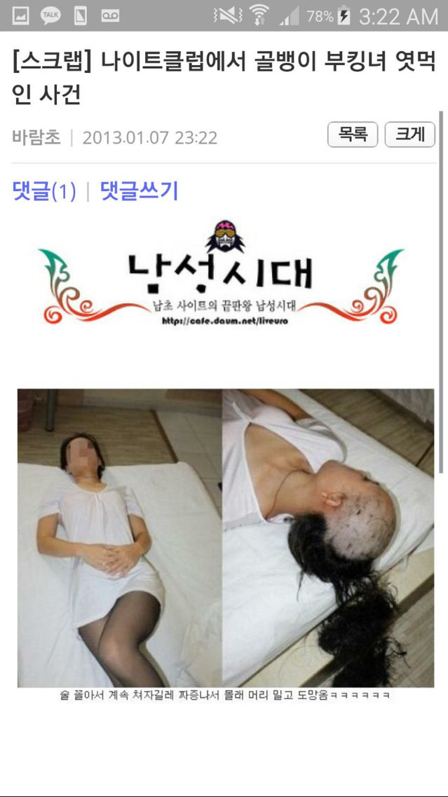 작성자프레페크레이프 작성시간 15.12.20 한남충 자작하는 클래스 봨ㅋㅋㅋㅋ 여자는 술에 취하면 안되나봄ㅋㅋㅋㅋ 애초에 저런 생각하는거 자체가 개혐이다 진짜