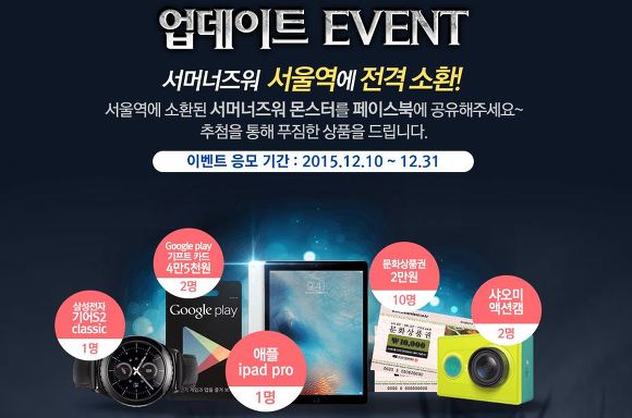 페이스북에 서울역에 소환된 몬스터들을 공유하는 이벤튼데,