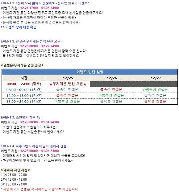 보면 알 수 있듯이 눈사람을 만들어야 하고, 무지개몬/엔젤몬 깜짝 던전도 돌아야해