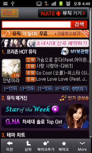 벨소리나 컬러링 여기서 한달에 네번씩 바꿀수있었음