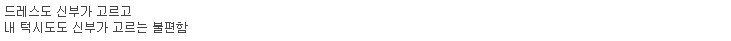 작성자곰인곰인곰 작성시간 16.01.23 섭섭하긴 하겠지만 이해감 나도 남편이 턱시도 몇시간씩 입어보면 초반엔 진심으로 리액션해주겠지만 나중엔 다 똑같은거같은데 그냥 빨리 집에가고싶다 이런생각밖에 안들듯