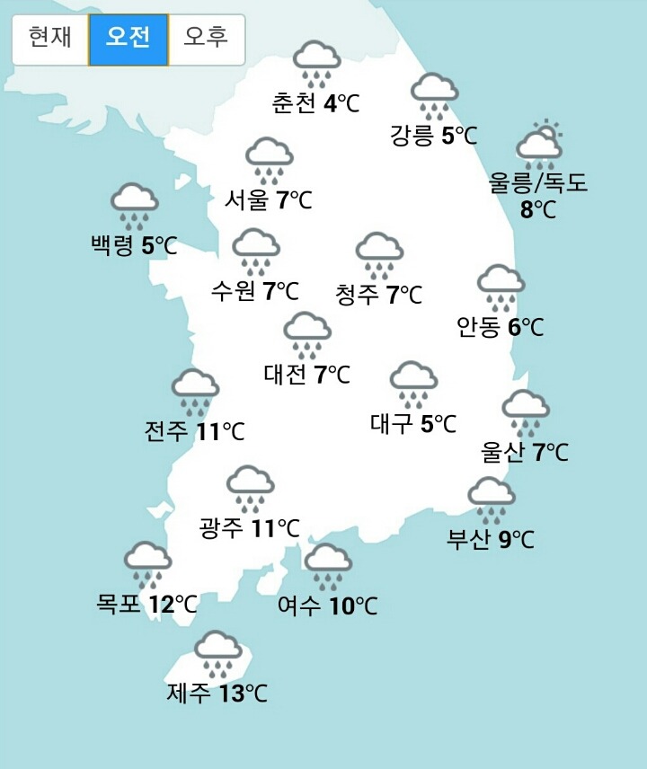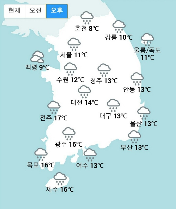 전국이 흐리고 비