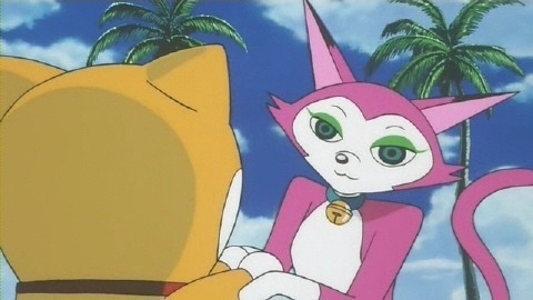 고양이형 보안관 로봇으로 백마형 로봇인 에드와