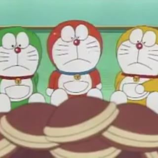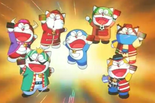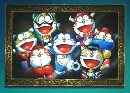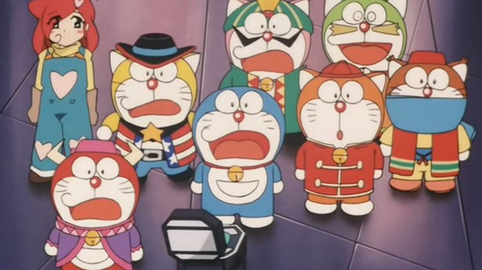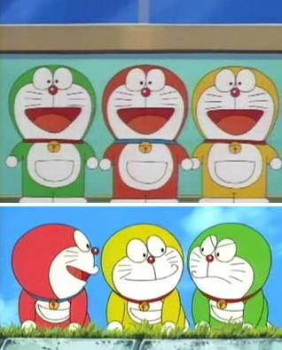 원래의 도라에몽들은 고양이 귀에 노란색 몸, 미성인 맑은 목소리를 지녔어