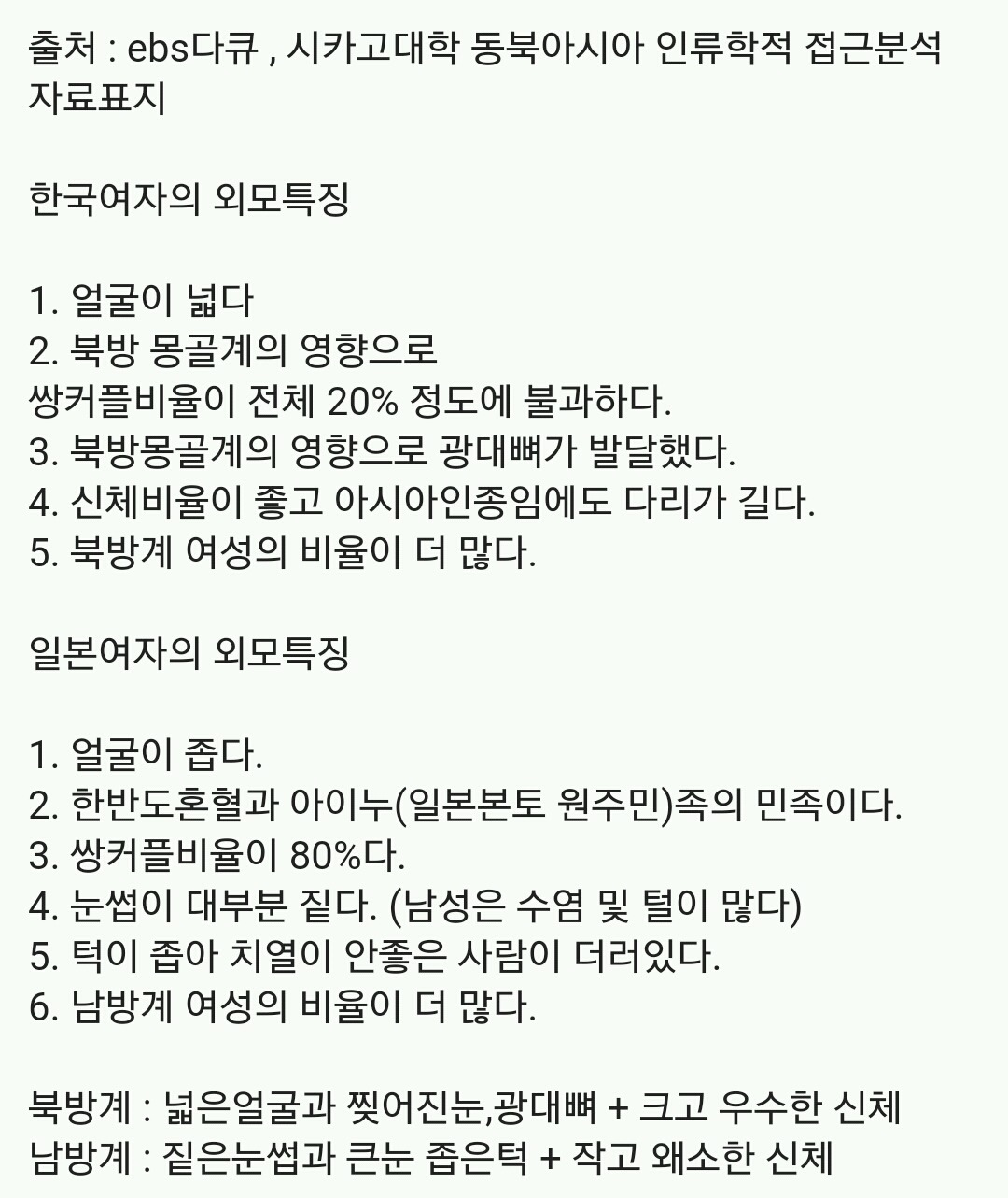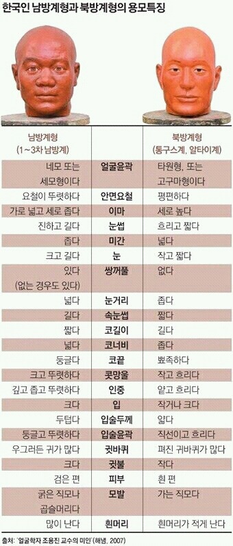 북방계 남방계 외모특징 ↓↓