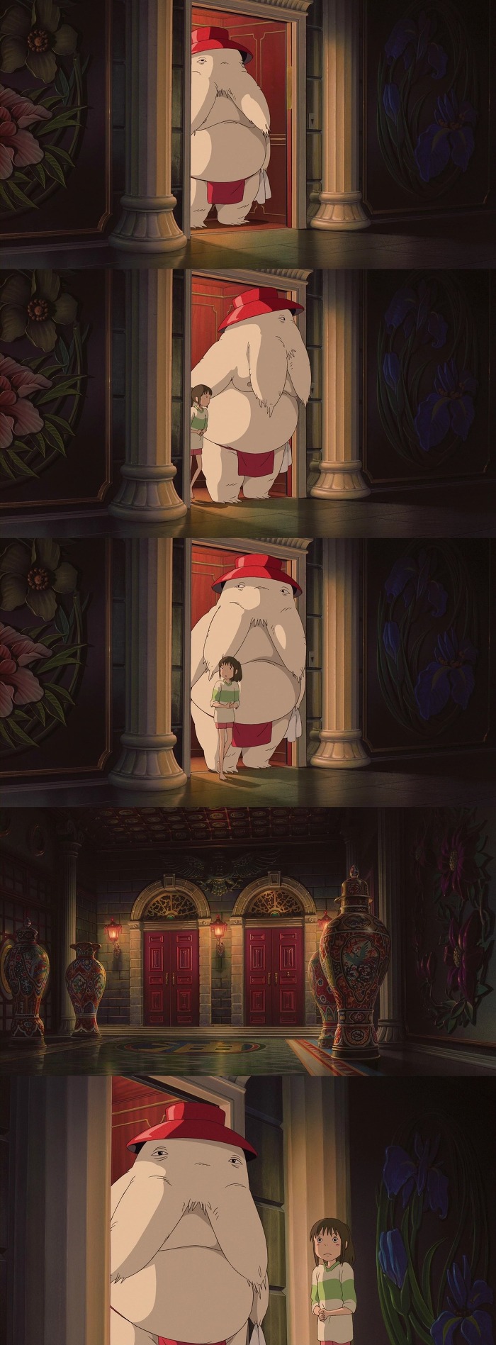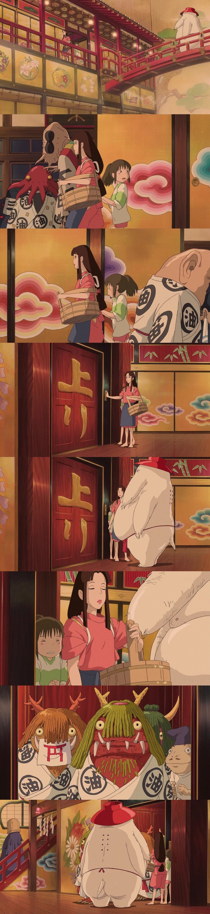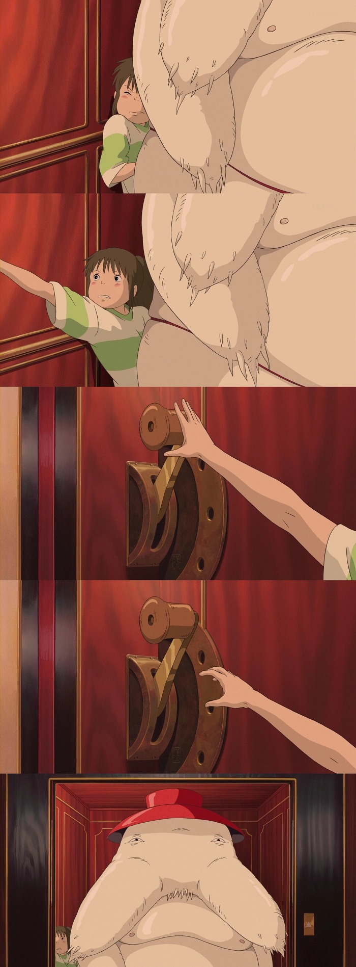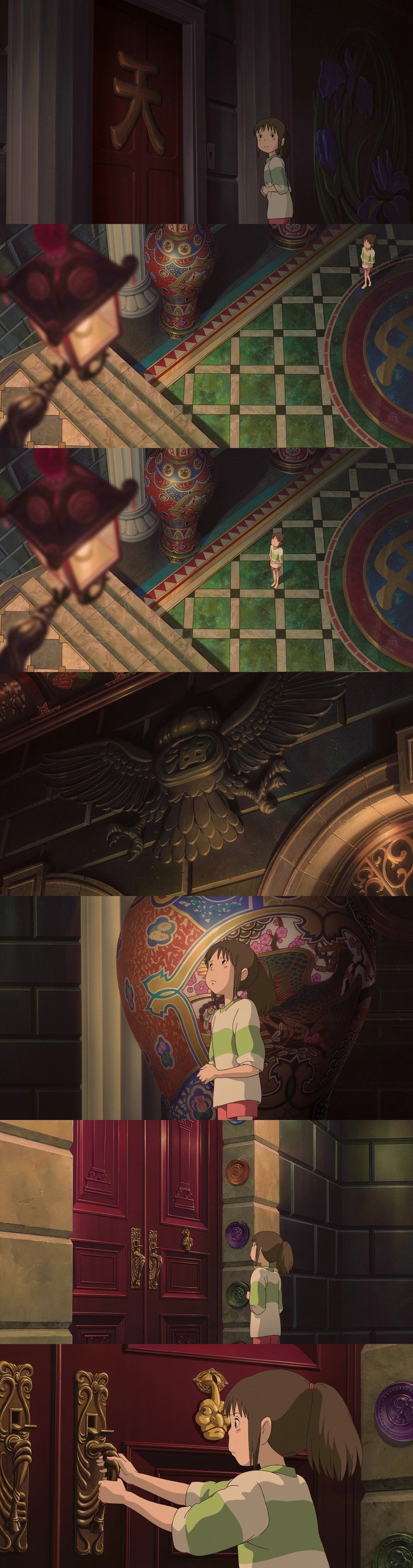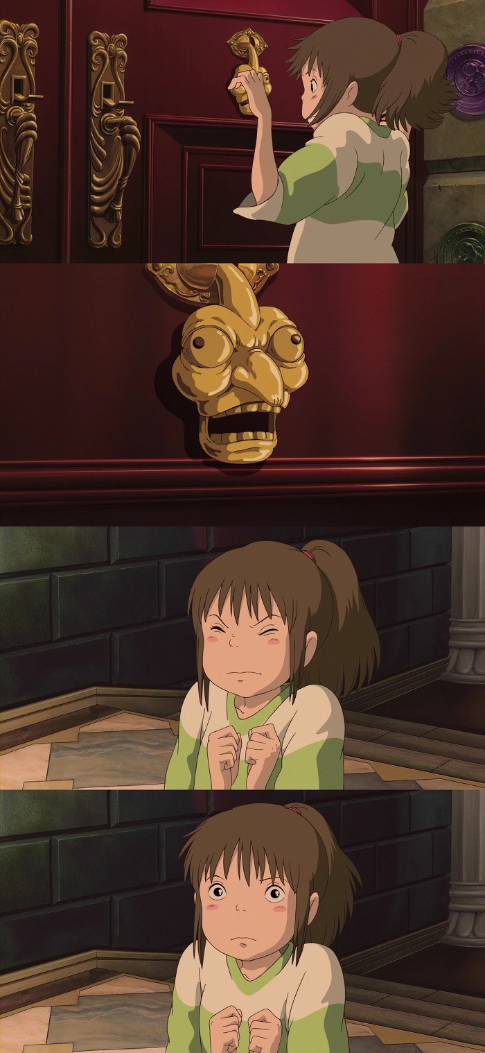 치히로는 유바바가 있는곳으로 가는 문을 당길려고 하는중
