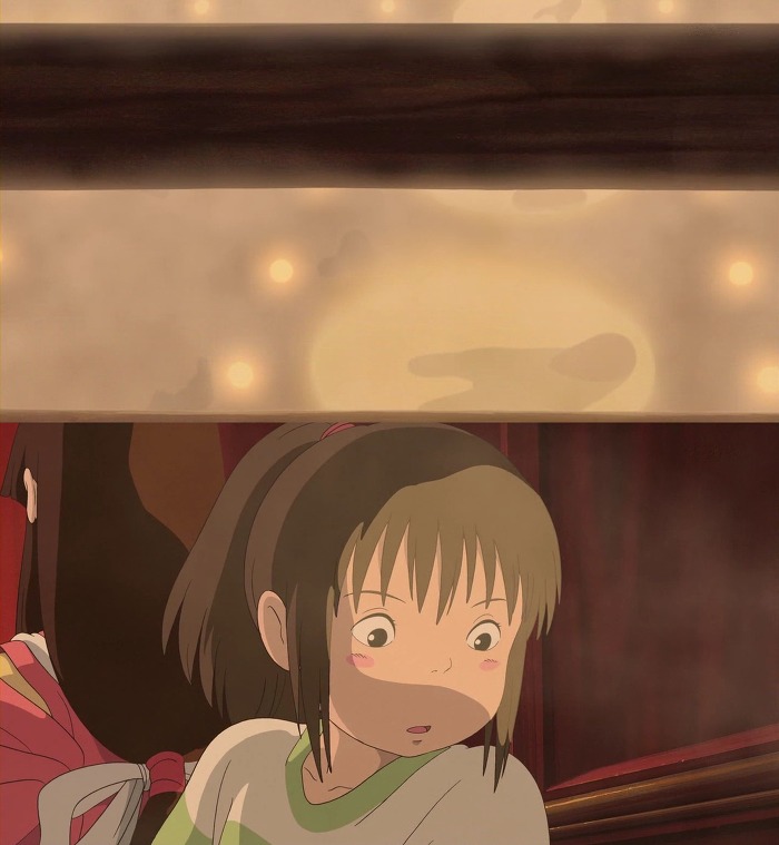 신기해서 가까이서 쳐다보는 치히로에게