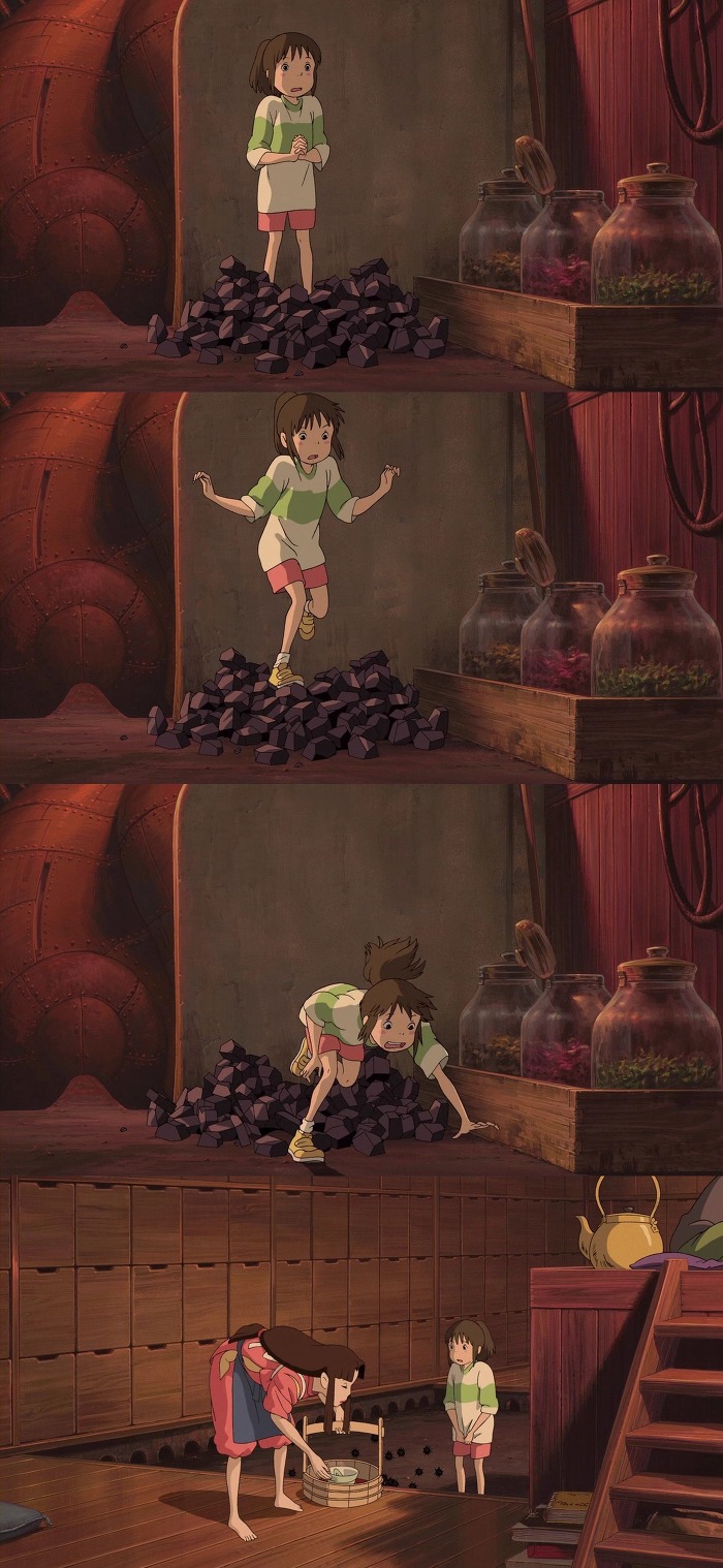 말하자 치히로는 숯검댕이들과 같이 석탄을 나름