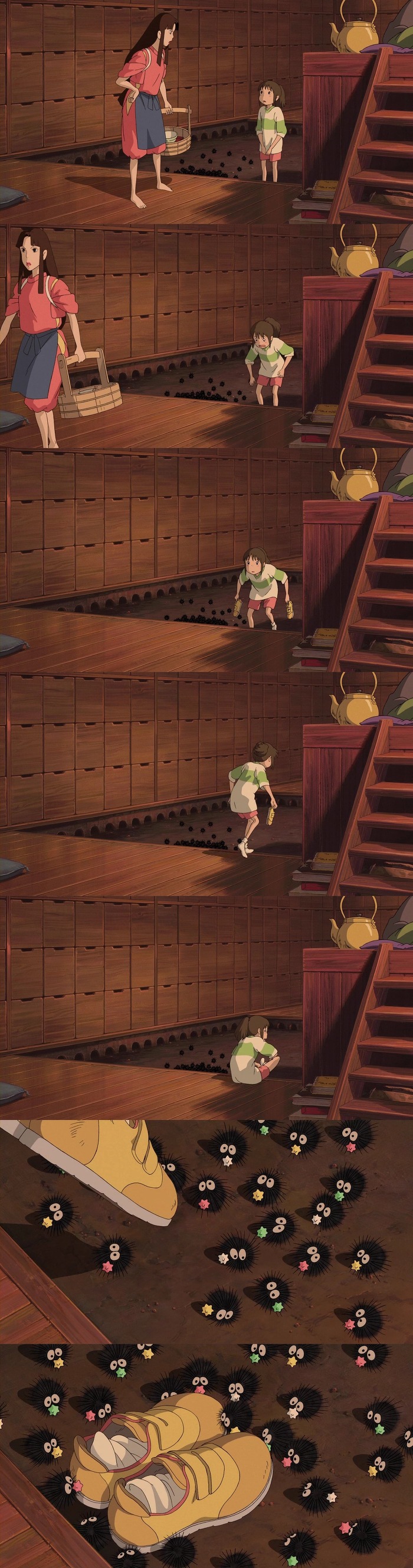 치히로가 신발을 놔두자 별사탕을 물고