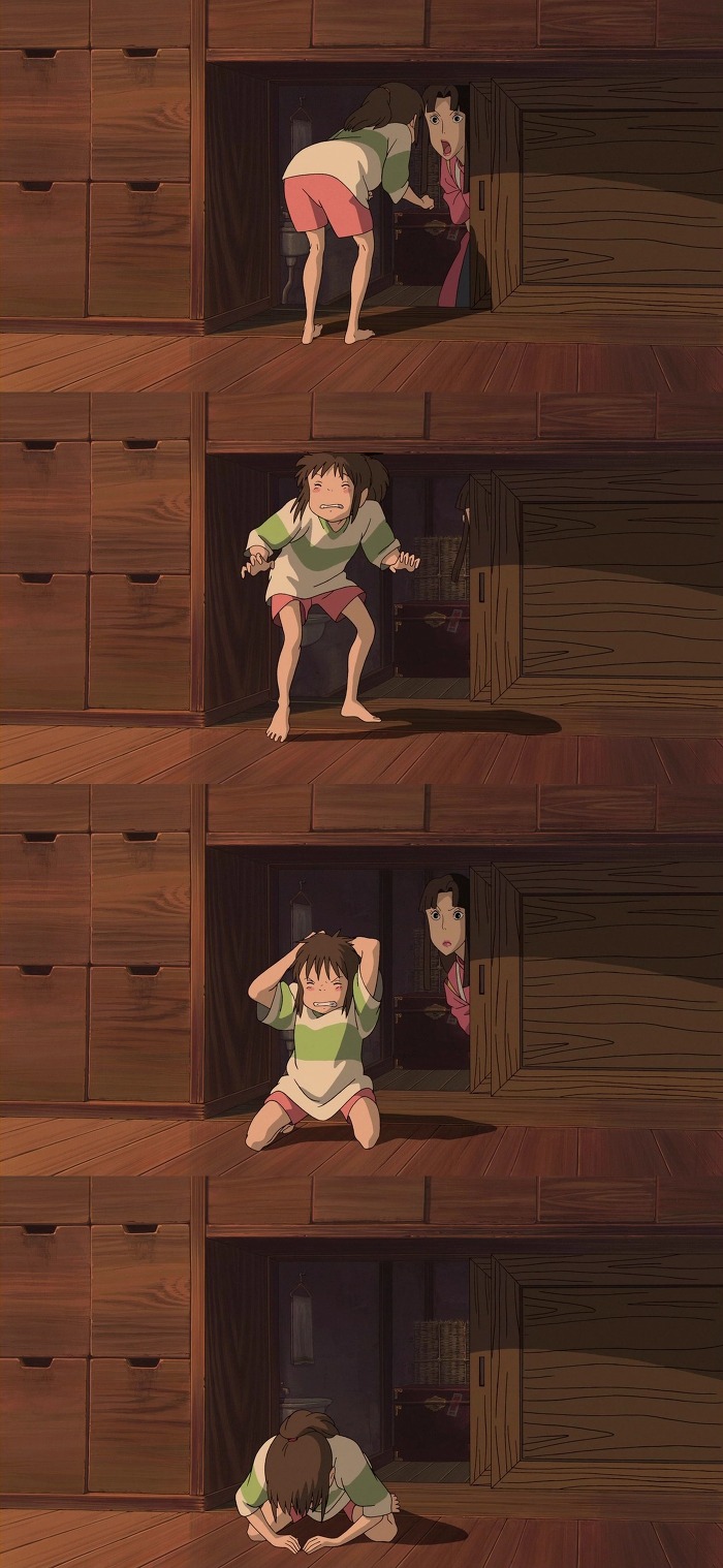 치히로는 유바바의 말을 듣자마자 떨고있음