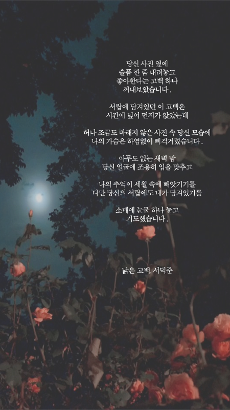 [스크랩] [기타]서덕준 시 모음 1 작성자담넘은냥이|작성시간16.05.29|조회수4,240 목록 댓글 21 글자크기 작게가 글자크기 크게가 https://brunch.co.kr/@seodeokjun 다음검색 스크랩 원문 : 비공개카페 현재 게시글 추가 기능 열기 북마크 공유하기 신고 센터로 신고 댓글 댓글 21 댓글쓰기 답글쓰기 댓글 리스트 작성자Ease (ft. Broods) | 작성시간 16.05.29 가을 내최애시ㅠㅠㅠㅠㅠㅠ인스타에 댓글달았더니 답글도 달아주셔서 개좋았유ㅠㅠ 작성자너무배고파서 정신이아득하다 | 작성시간 16.05.30 서덕준씨 개죠아ㅠㅠㅠ 작성자돼지가 되지 | 작성시간 16.05.30 아이분너무좋아ㅜㅠㅠㅠ마음이따뜻해진다 작성자의지의지이ㅡ지지 | 작성시간 16.07.06 개좋아진짜 작성자계진성 | 작성시간 16.07.16 좋다 댓글 전체보기