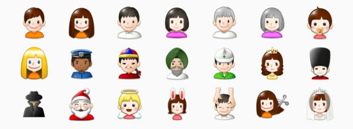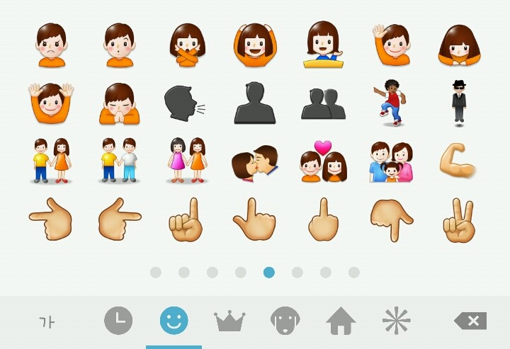 아래는 비교를 위해 넣은 갤럭시 이모티콘 사진인데, 피부색이 한정적인 것을 확인할 수 있음.