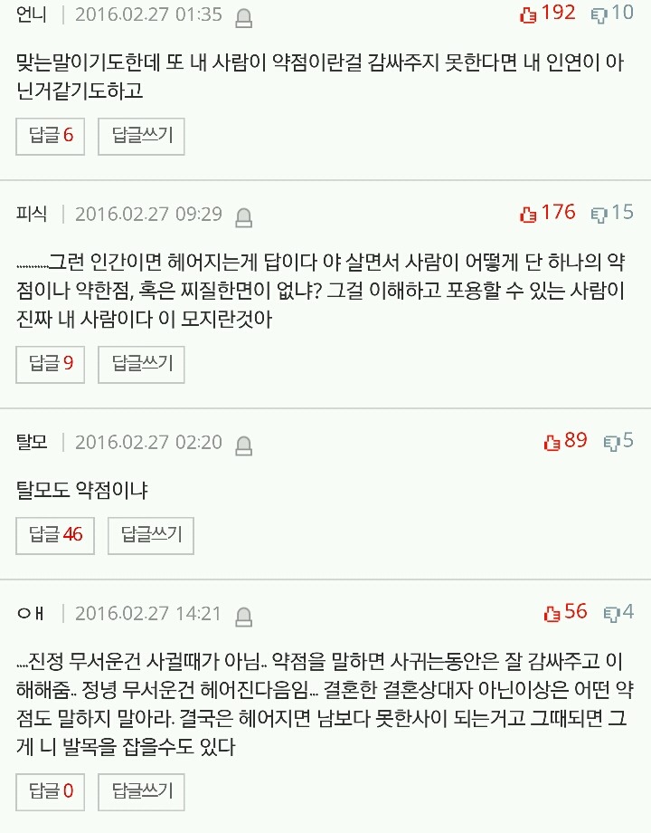 이해받고싶어서 애인한테 자기 약점을 말해버리면