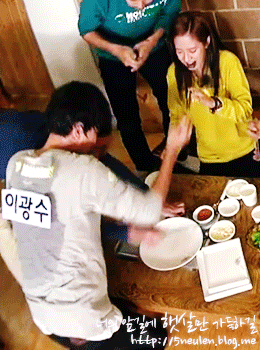 (송지효 오니까 바로 자기가 바닥으로 내려옴)