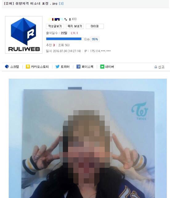 더 충격적인 건 검색해보면 아이돌,미성년자연예인,정치인 등등 악의적으로 캡쳐하거나 합성한 사진이 엄청 많다는 것..;